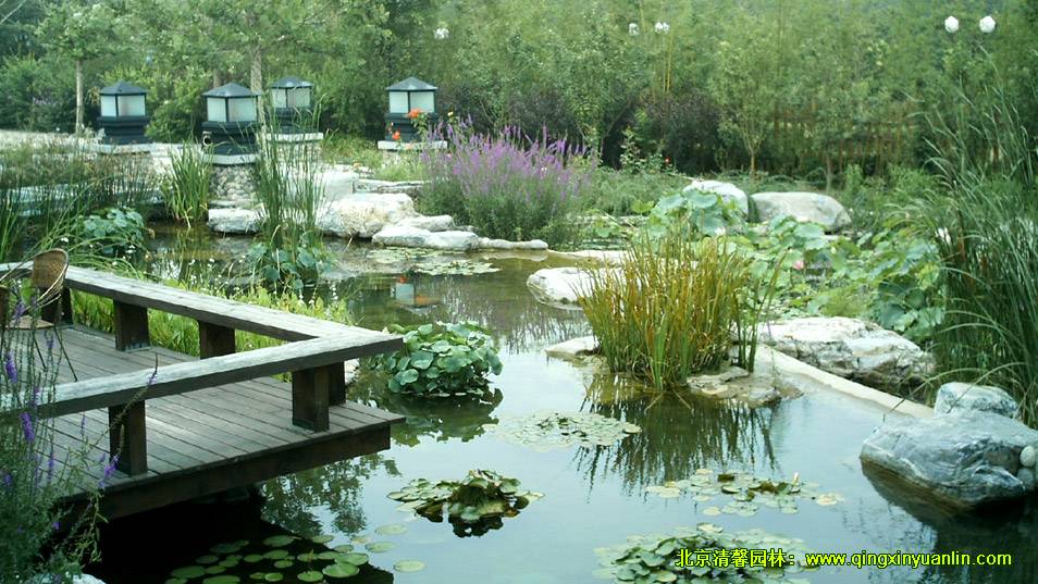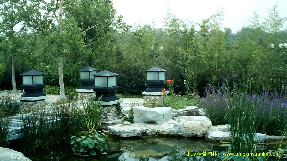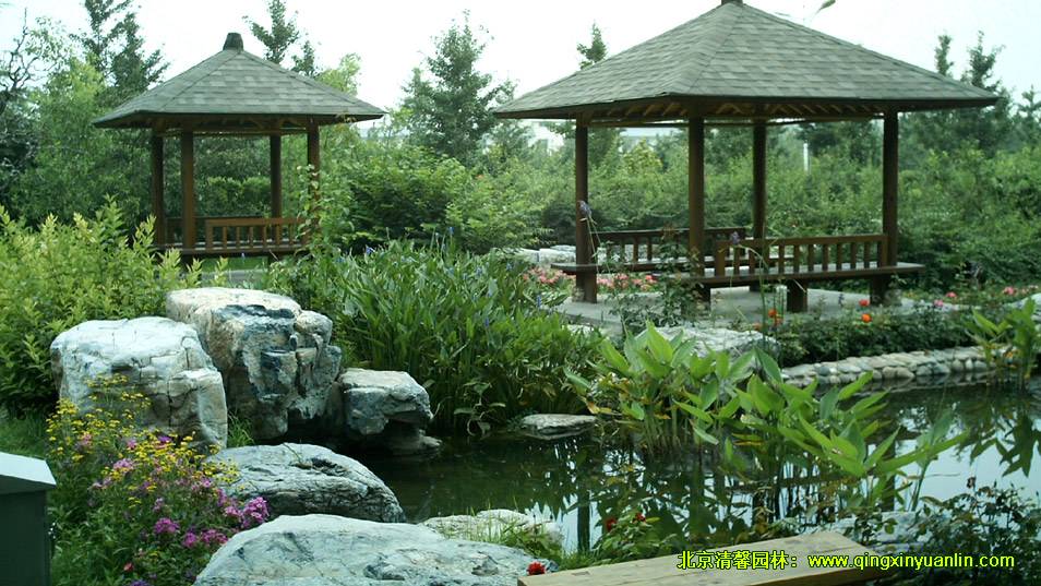 該項(xiàng)目位于北京市海淀區(qū)四季青鎮(zhèn),總面積16000 m2,工程內(nèi)容:水池、建筑小品、假山駁岸、園路鋪裝、停車場(chǎng)、地形整理、植物種植、給排水、燈光照明等。木屋坐落在起伏的綠地中,屋邊水系蜿蜒,水流潺潺,不管是沿著屋邊木棧道漫步,還是坐在水邊木亭內(nèi)品茗,都可領(lǐng)略到周邊精心營(yíng)造的美景,讓人有一種置身山清水秀的自然美景中的舒暢感覺(jué)。
