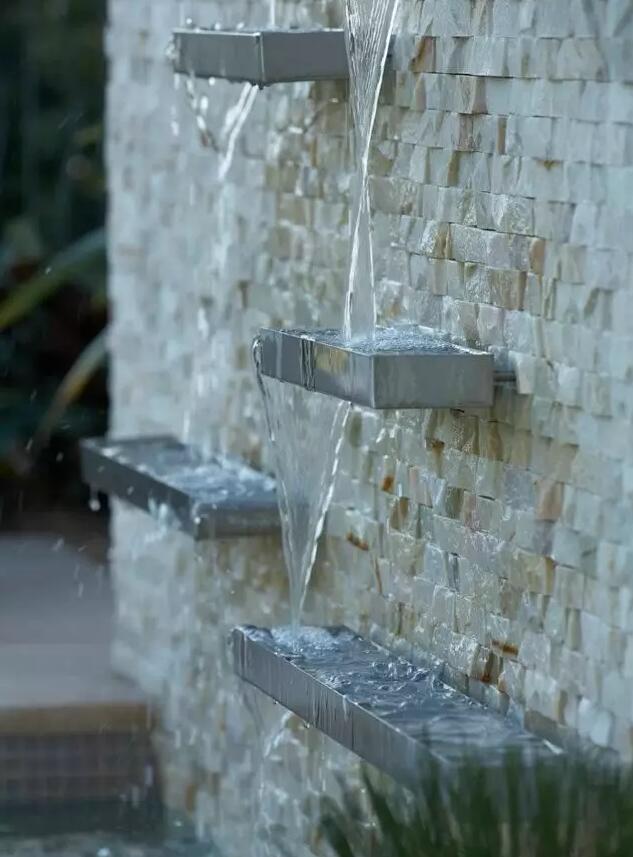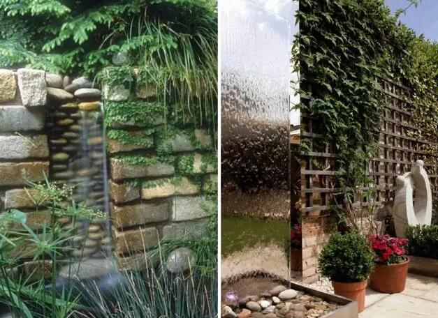 •   水景墻是花園里最讓人放松的景觀裝置,它會帶給花園一個清新的面貌。為了讓水景墻更貼近自然一些,可以利用現(xiàn)有的粗糙石頭。另外,如果喜歡更超前的東西,還可以融進一些先進的設