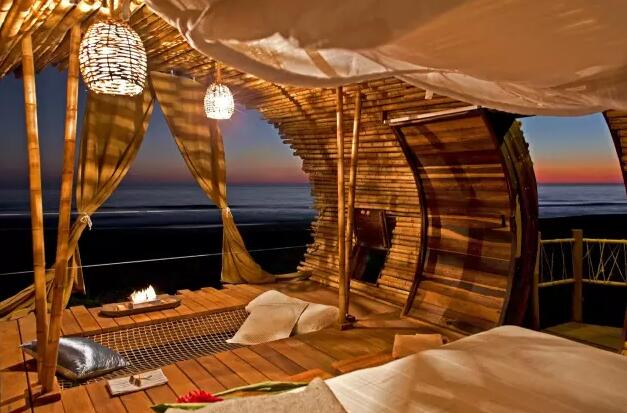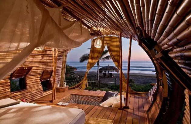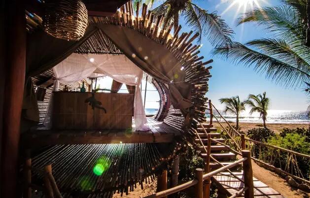 這個(gè)樹(shù)屋位于一個(gè)墨西哥,81萬(wàn)平方米的綠色生態(tài)度假村內(nèi),該度假村內(nèi)共有12間客房,漫步于度假村內(nèi)1600米長(zhǎng)的海灘