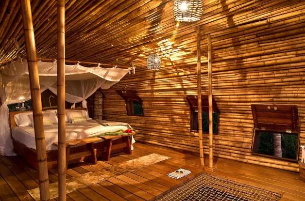 吸引你眼球的是一個(gè)橢圓形的被竹子包圍的平臺(tái),搖曳于棕櫚樹(shù)樹(shù)冠之下及灌木叢之上,這個(gè)高處的棲息處是一間65平方米的雙層樹(shù)屋的海濱臥室
