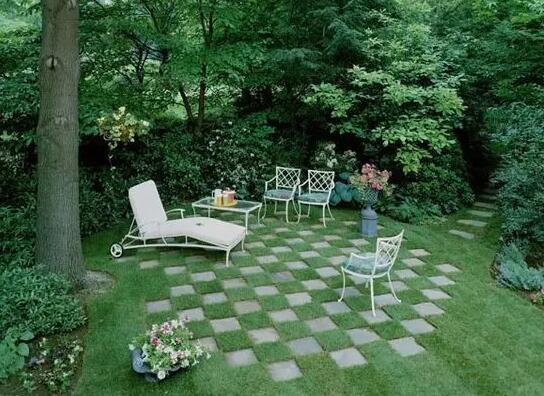 草坪拼花的最高境界:可多可少,多則簡(jiǎn)約寧靜致美,少則隨意百變,與硬質(zhì)鋪裝搭配,玩圖案玩構(gòu)成,以達(dá)到完美視覺效果,給庭院增色不少